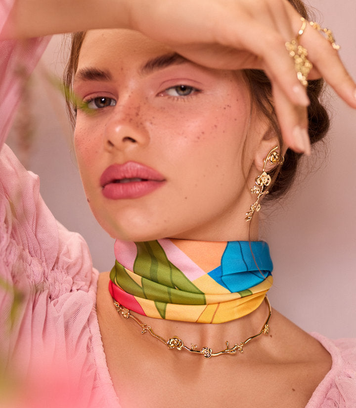 The Tulip Scarf is the first splash of color in the AFLORA collection, bringing the energy of blossoming to your everyday life.