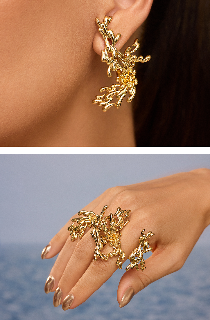The collection draws inspiration from the strength of corals and the courage of the Lobster, whose symbolism invites us to embrace shedding and the continuous cycle of renewal.
