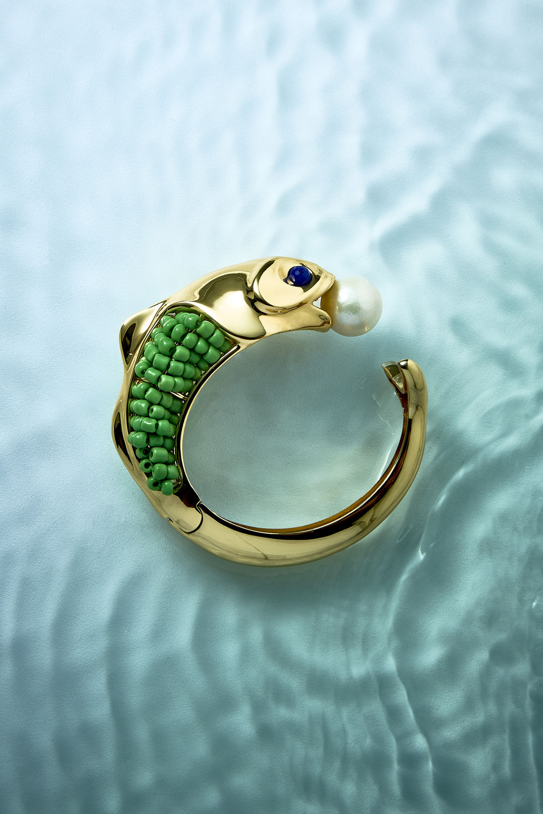 Featuring sophisticated design and the poetic symbolism of the ocean, powerful forms of jellyfish, lobsters, fish, and starfish, which marked the runways, are translated into sculptural pieces that exude strength and glamour.