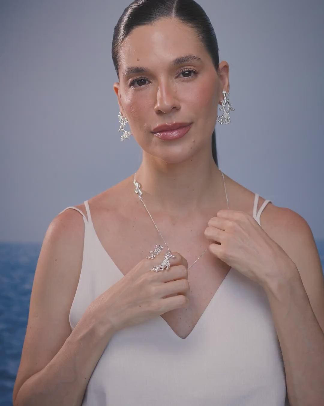 Like a shoal of fish following the current of the water, the necklace is delicate and fluid, allowing for multiple uses with its clasp that hooks onto any part of the chain. It can be worn as a long necklace, a double wrap, a belt... follow the current of your imagination and enjoy this versatility.