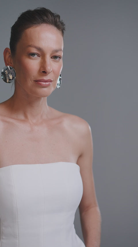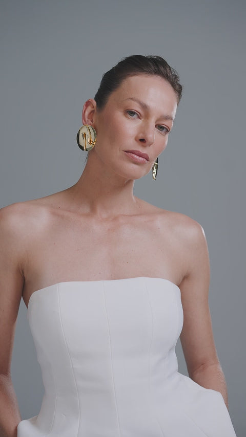Chuva Earring is a piece of striking presence and sculptural design. In gold or silver, its mirrored circular base holds delicate elongated stems reminiscent of falling drops, creating a fluid and contemporary effect. Light and elegant, it is perfect for those seeking visual impact combined with timeless sophistication.