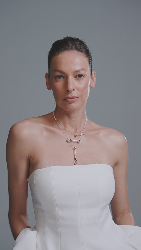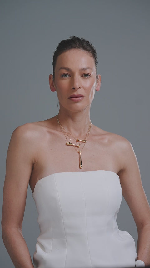 Chuvisco Necklace is a delicate meeting of fluidity and sophistication. In silver or gold, its fine chains hold elongated triple pendants reminiscent of drops about to fall, creating a subtle and elegant sense of movement. Light and versatile, it is the perfect choice for those who appreciate contemporary jewelry with organic inspiration.