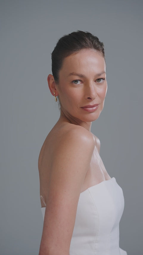 Chuvisco P Earring is the embodiment of minimalism in motion. In silver or gold, its elongated design resembles elegant drops about to fall, creating a fluid and contemporary effect. Light and versatile, it is perfect for pairing with everything from casual outfits to sophisticated looks, always with an artistic touch.