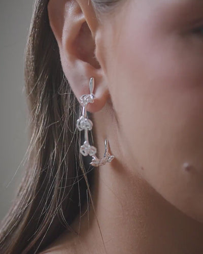 The rare and profound feminine essence symbolized by orchids is the inspiration for the Floralis collection; the hoop earrings bring a contemporary romanticism in the form of flowering branches that circle the woman's face.