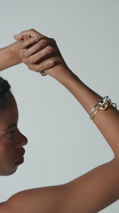 Delicate yet full of symbolism, this bracelet pays tribute to women’s bodily expression—free and graceful. The curves in noble metal with gold and silver plating make it an elegant choice, whether worn alone or as a pair.