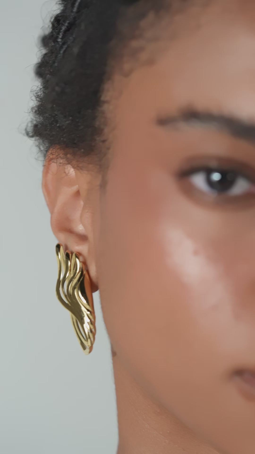 Inspired by what lingers beyond bodily movement, these earrings embody the invisible traces left in the air—lines in motion yet suspended, as though a fleeting moment were captured in time. Their fluid design translates gestures into poetry. Crafted in light, polished metal, they come plated in gold and silver.