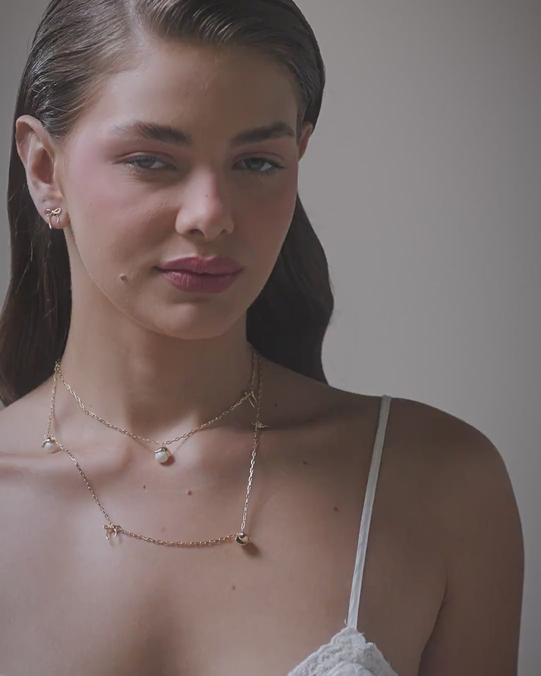 Youthful delicacy and the rebirth of tulips inspire this collection; the chain, symbolizing strength and determination, features hanging tulip, bow, and pearl charms with a fresh and delicate concept.