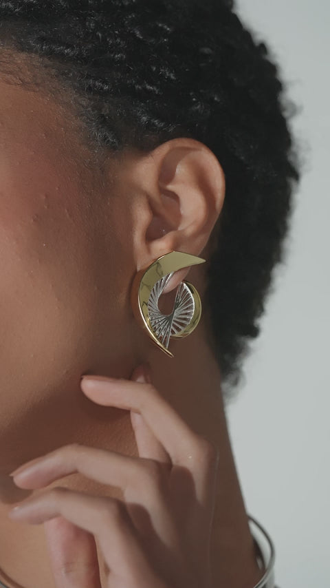 Abstract curves and interconnecting wires define this contemporary design. The interplay of gold and silver plating creates a modern expression of identity through instinctive, expanding lines.
